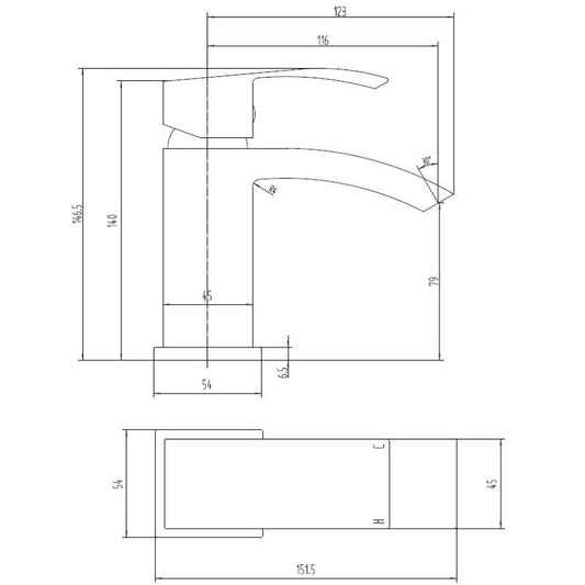 Tailored Bathrooms Brecon Black Mono Mixer Tap & Waste 146mm x 45mm