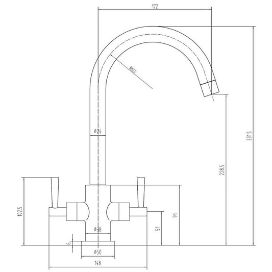 Tailored Bathrooms Monmouth Dual Lever Kitchen Mixer Tap In Chrome