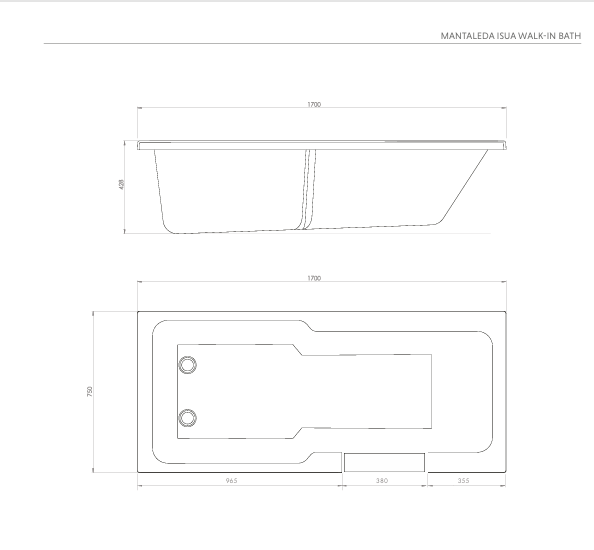 - Water capacity: 1700 x 750mm; 210 litres unoccupied
